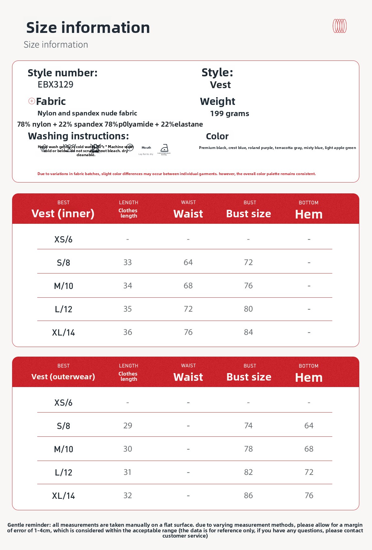 Sizes: S, M, L, XL
